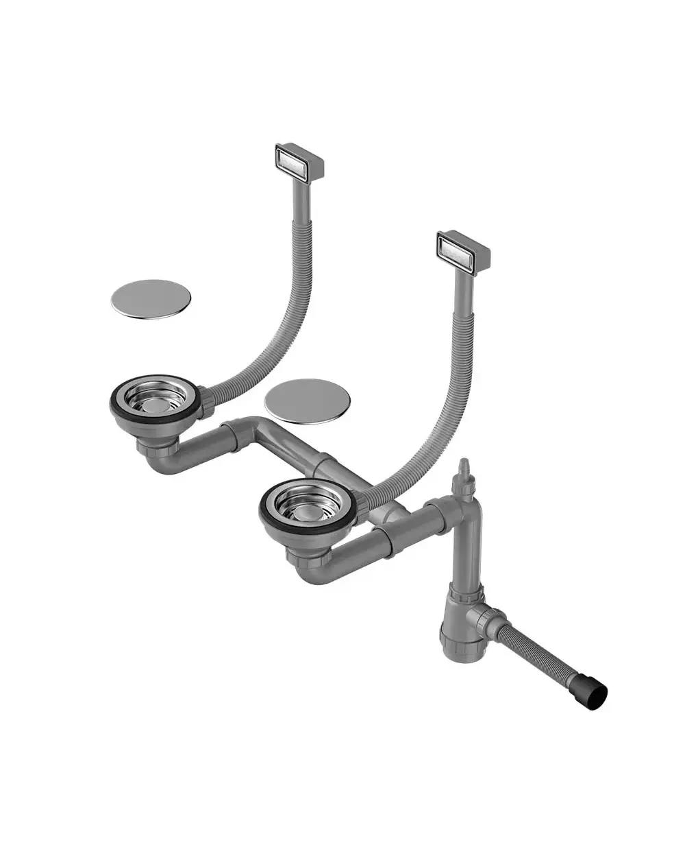- Арматура для двухчашевых моек с прямоугольными переливами, декоративными решетками и декоративными накладками.