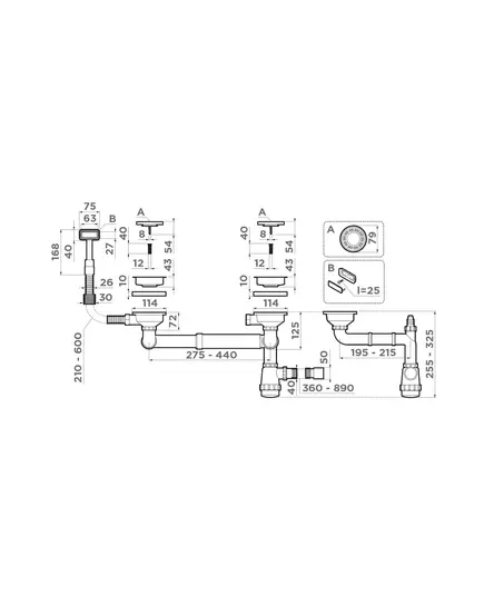 - Арматура для полуторачашевых моек с прямоугольными переливами и декоративными решетками.