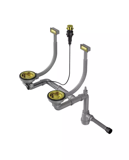 Арматура с клапаном-автоматом для двухчашевых моек с прямоугольными переливами Omoikiri WK-2-A-LG