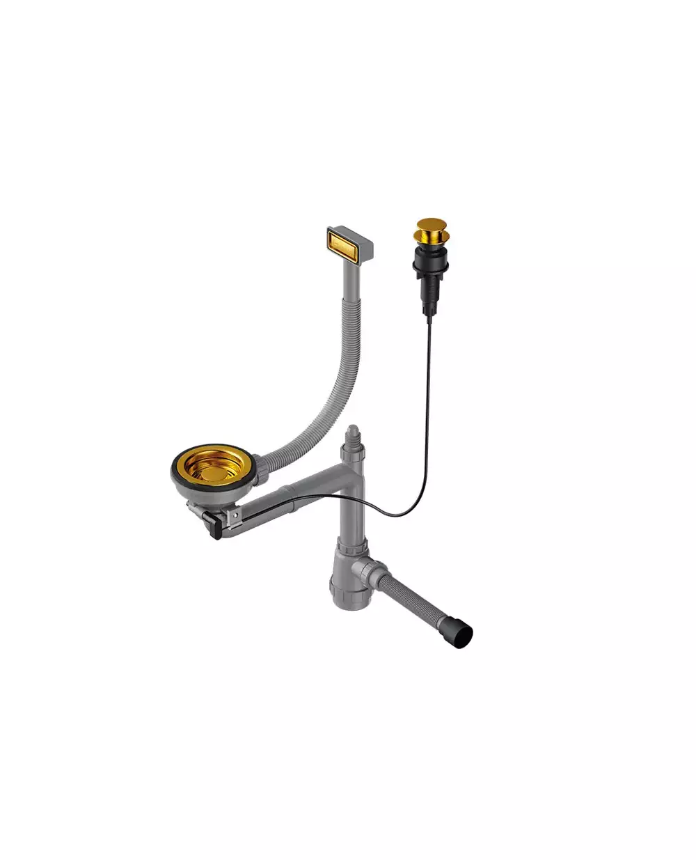 Арматура с клапаном-автоматом для одночашевых моек с прямоугольным переливом и декоративным элементом для корзины Omoikiri WK-1-A-AB022