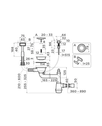 Арматура с клапаном-автоматом для одночашевых моек с прямоугольным переливом и декоративным элементом для корзины Omoikiri WK-1-A-GM