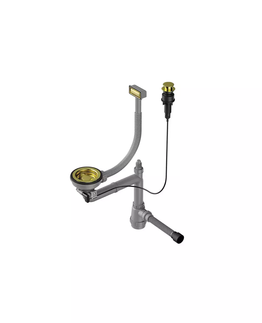 Арматура с клапаном-автоматом для одночашевых моек с прямоугольным переливом и декоративным элементом для корзины Omoikiri WK-1-A-LG