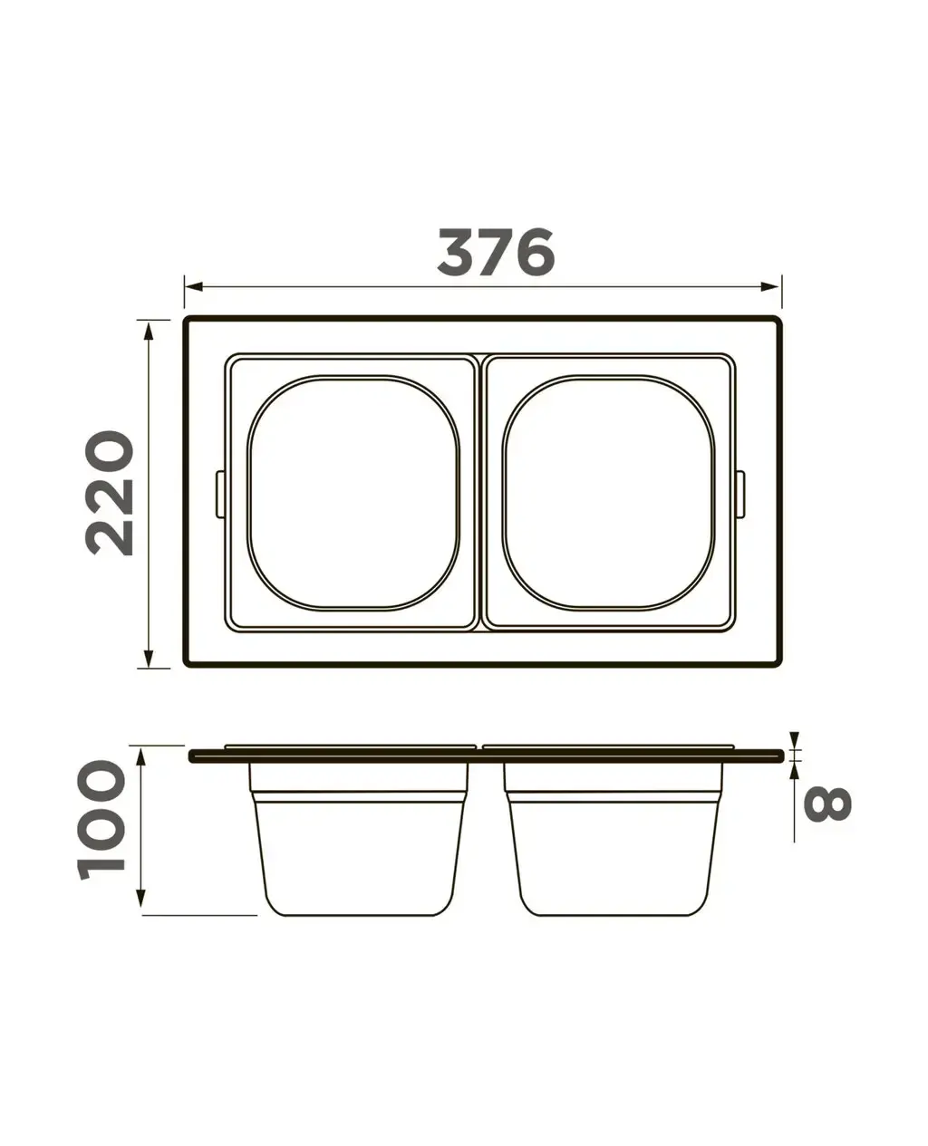 - Контейнеры коллекции DC представляют собой различные конфигурации, состоящие из нескольких элементов: одной, двух или трех чаш, изготовленных из нержавеющей стали и фиксирующей подставки, изготовленной из высокопрочного HPL пластика.