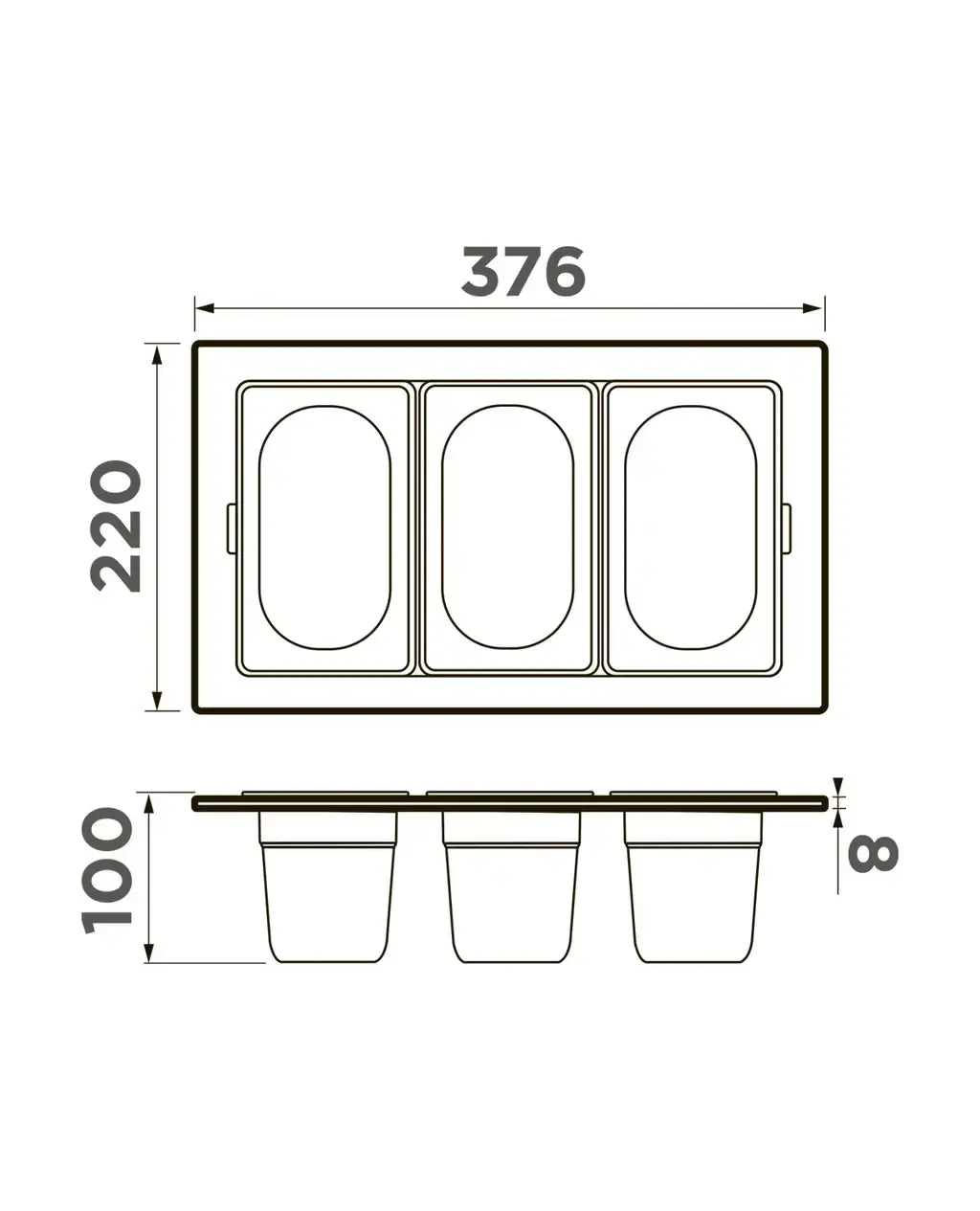 - Контейнеры коллекции DC представляют собой различные конфигурации, состоящие из нескольких элементов: одной, двух или трех чаш, изготовленных из нержавеющей стали и фиксирующей подставки, изготовленной из высокопрочного HPL пластика.