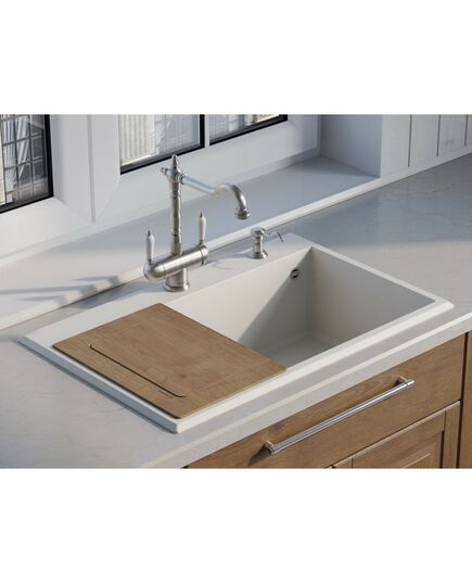 - Гармоничное сочетание мойки, смесителя и разделочной доски идеально дополняют друг друга.
