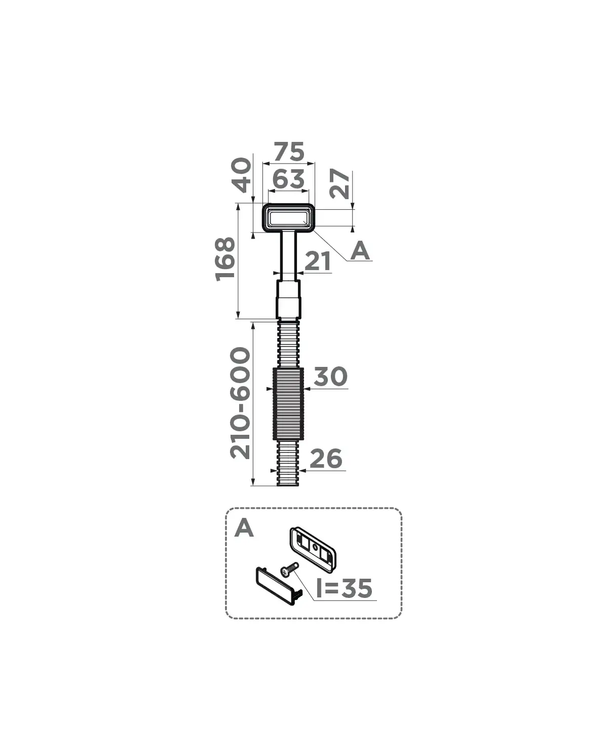 - Сменный прямоугольный перелив для арматуры серии WK подходит для моек с прямоугольным переливом.