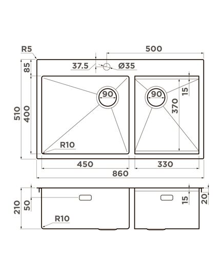 крепления, донный клапан (автоматический донный клапан приобретается отдельно), сифон, слив, перелив, декоративный элемент для корзинчатого вентиля, гарантийный талон , функциональная вставка и 2 доски из HPL-пластика (цвет: GB - графит)