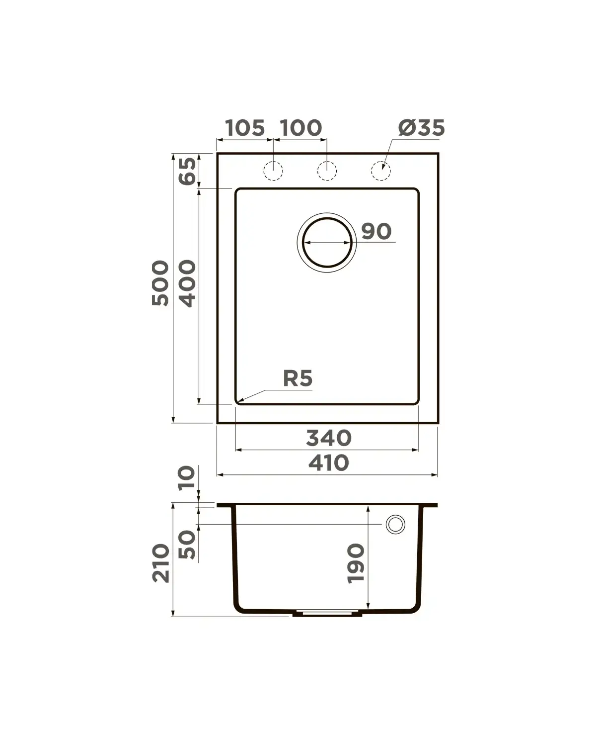 • Габариты мойки 500х410 мм — комфорт для широких столешниц.