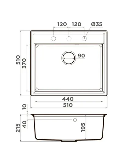 • Габариты мойки 510х510 мм — комфорт для широких столешниц.