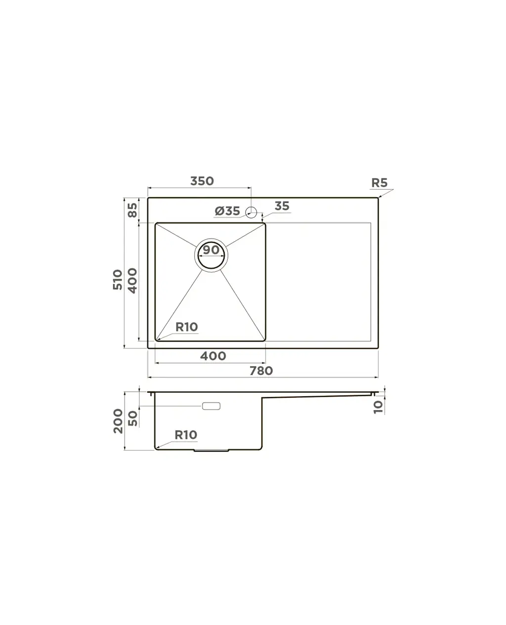 Размер мойки,мм