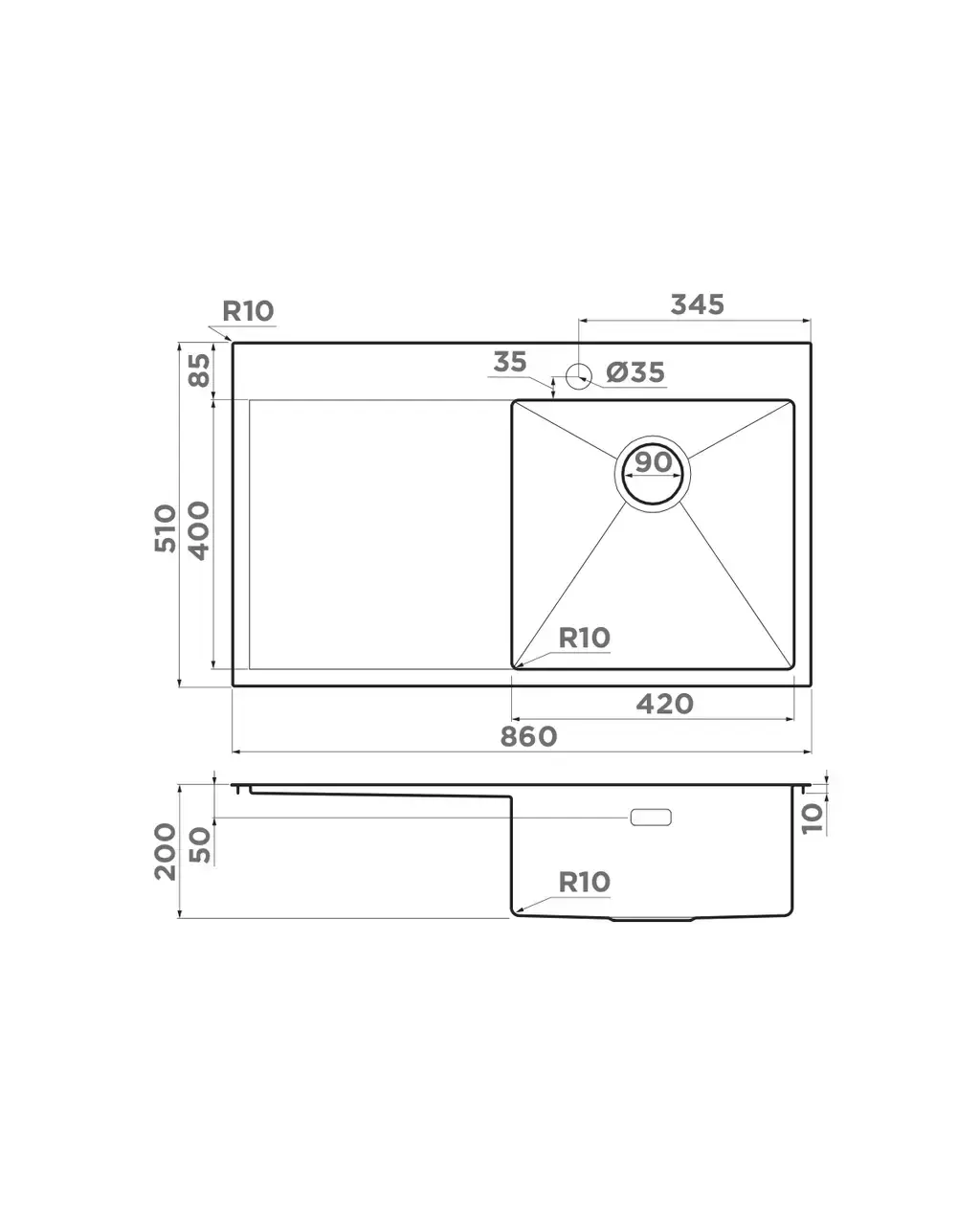 БрендOmoikiri МатериалНержавеющая сталь Размер мойки,мм860х510 Вес нетто8,96 Размер чаши,мм420x400 Размер монтажной тумбы,см50 см Тип монтажаНакладной Расположение чашисправа ЦветНержавеющая сталь Гарантия 15 лет