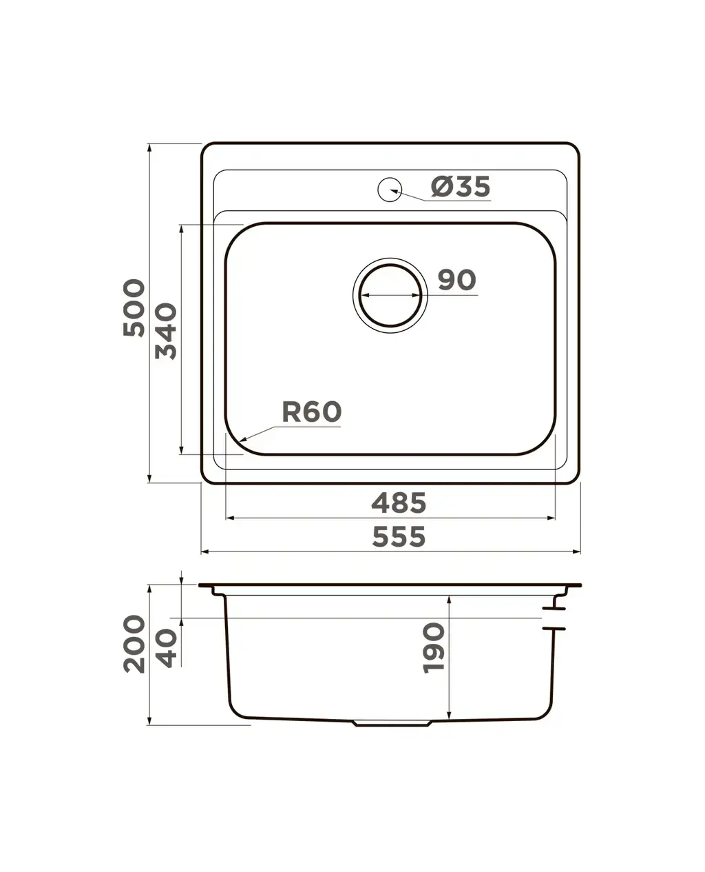 Размер мойки,мм