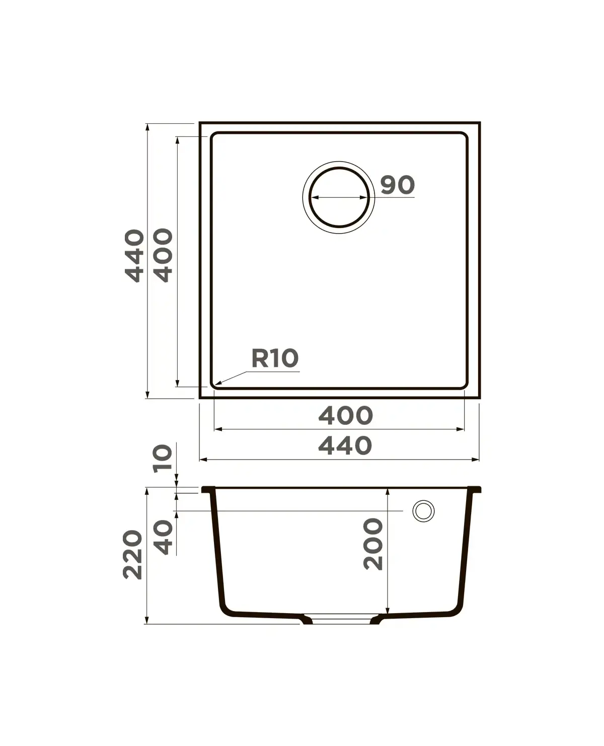 Размер мойки,мм
