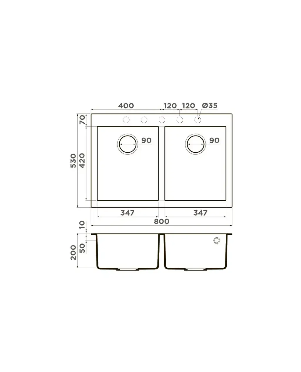 Размер мойки,мм
