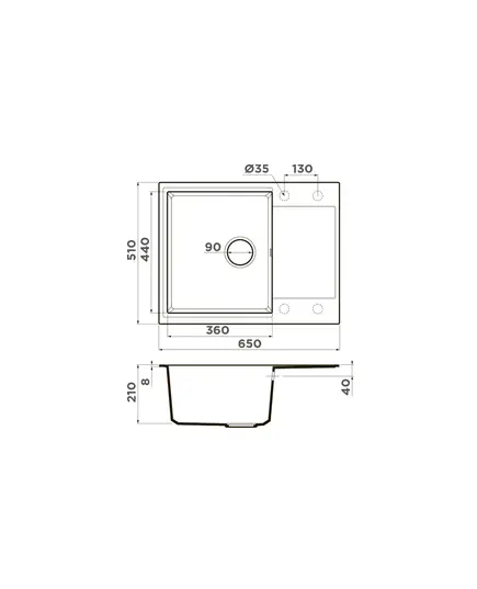 - Габариты мойки 650х510 мм — комфорт для широких столешниц.