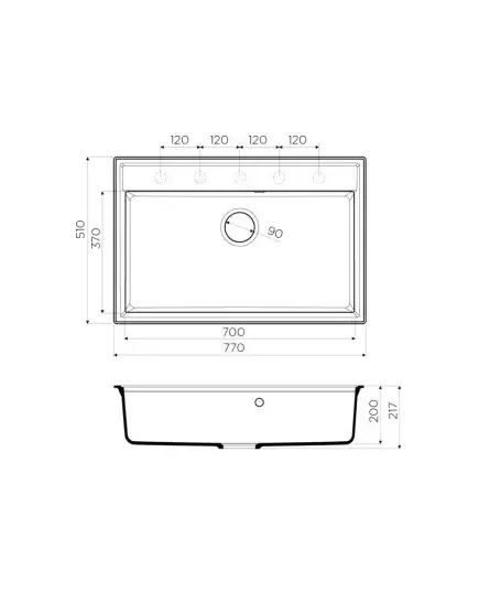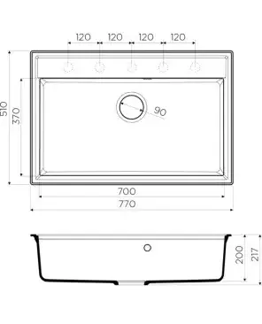 • Габариты мойки 770х510 мм — комфорт для широких столешниц.