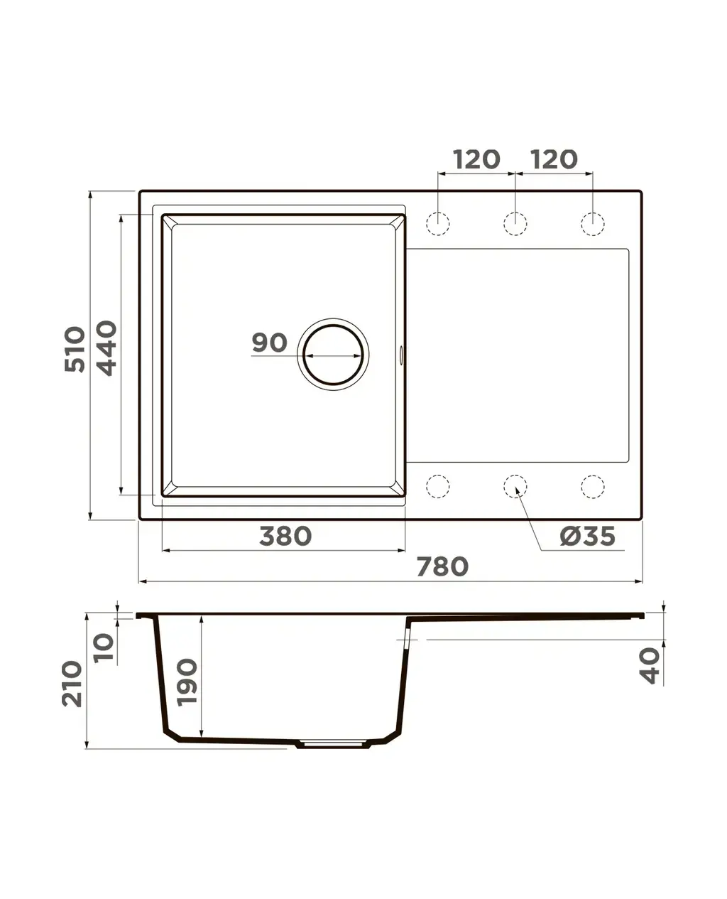 Размер мойки,мм