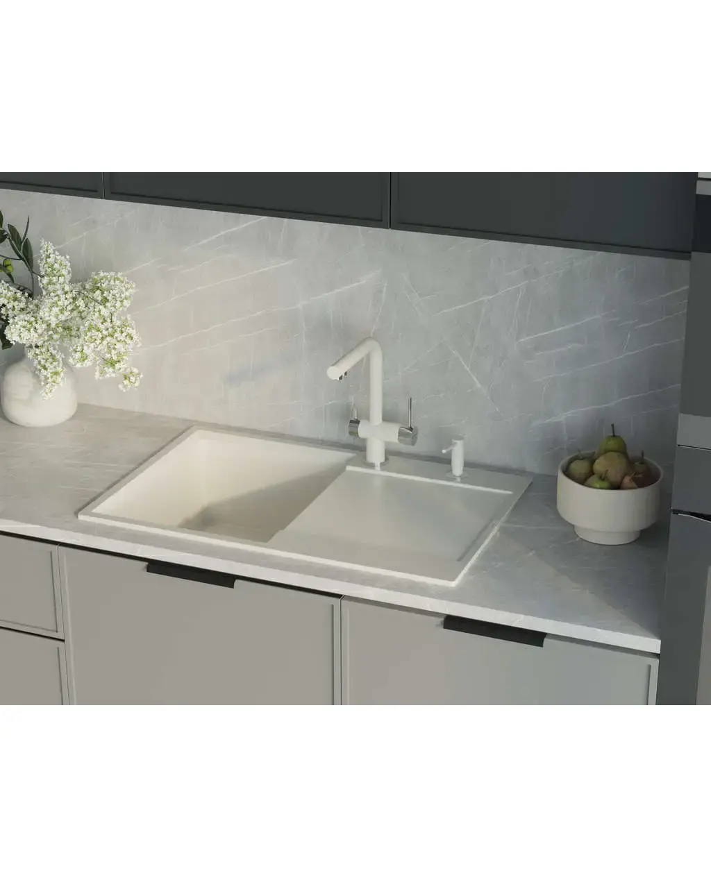 - Благодаря этому элементу мойка обретает устойчивость к воздействию различных кислот и щелочей, что гарантирует ее неизменный внешний вид.