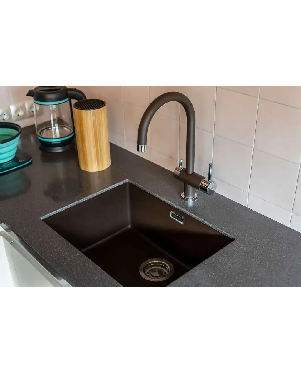 - Составляющим наполнителем моек ARTGRANIT является молотый кварц, который обладает непревзойденной прочностью.