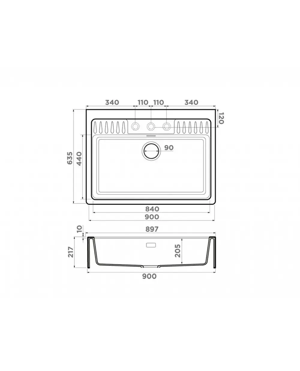Размер мойки,мм