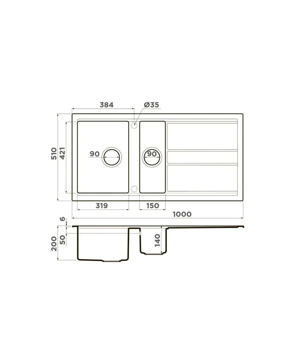 Размер мойки,мм