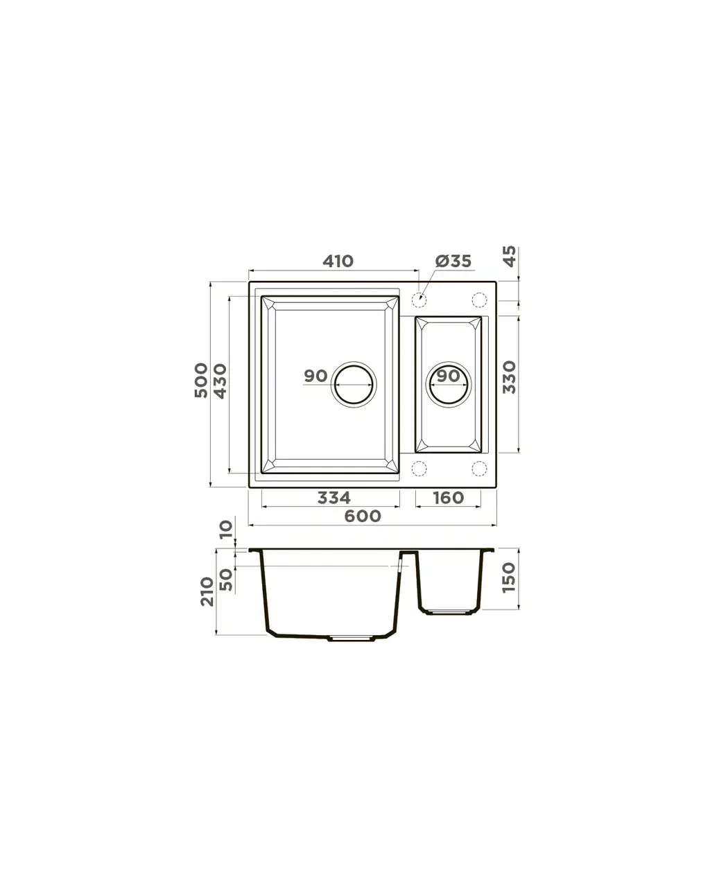 Размер мойки,мм