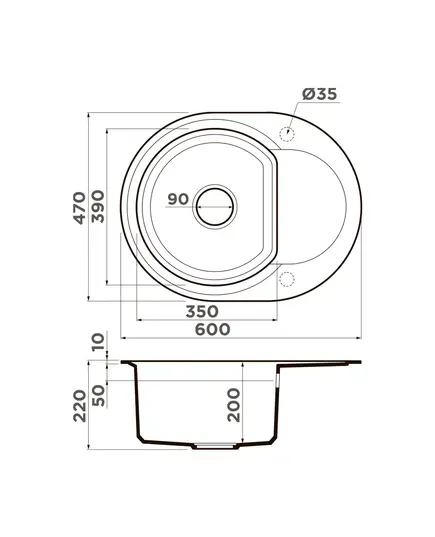 • Габариты мойки 600х470 мм — комфорт для широких столешниц.