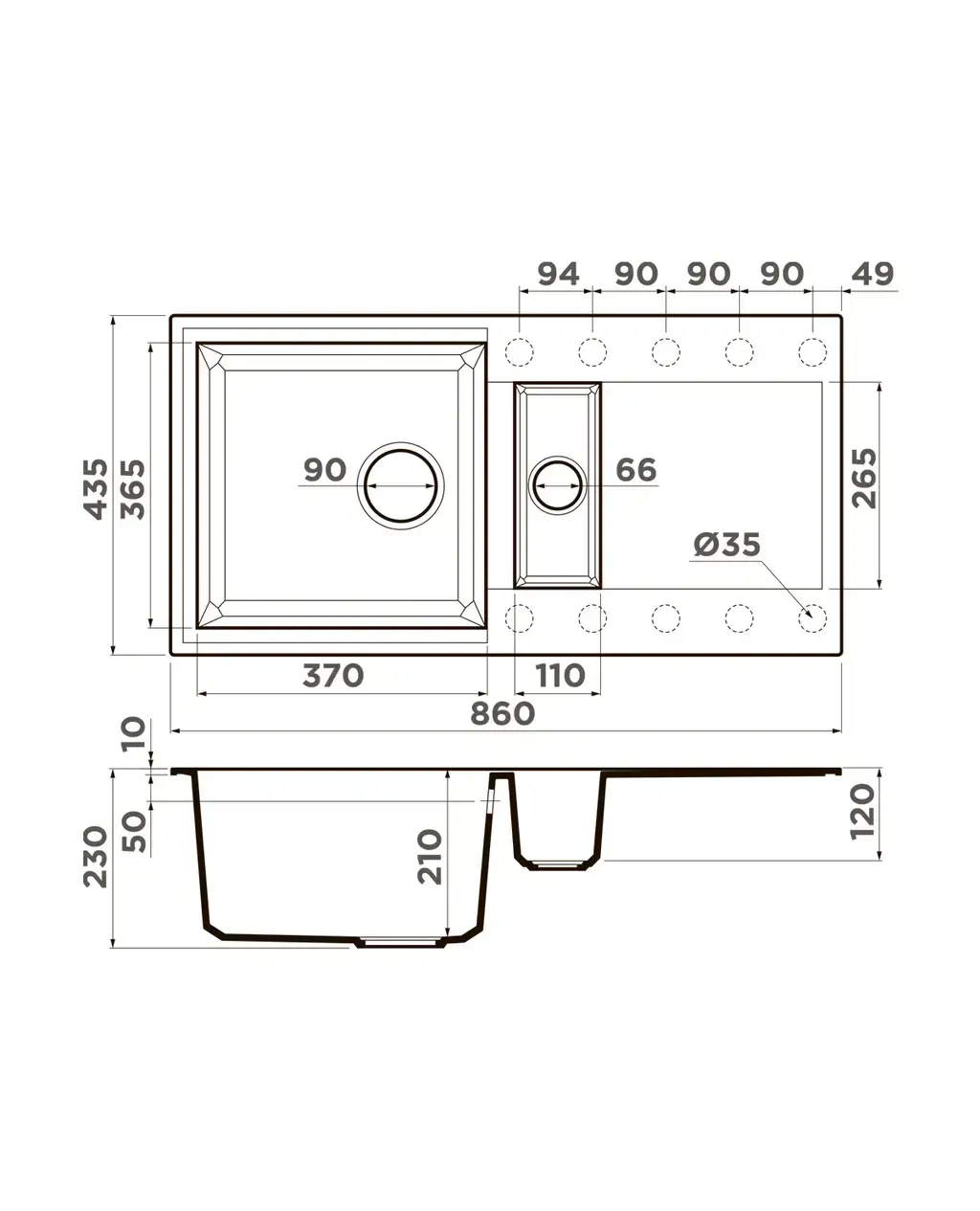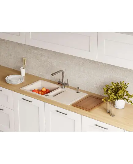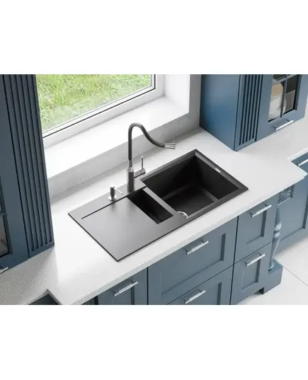 - Благодаря этому элементу мойка обретает устойчивость к воздействию различных кислот и щелочей, что гарантирует ее неизменный внешний вид.