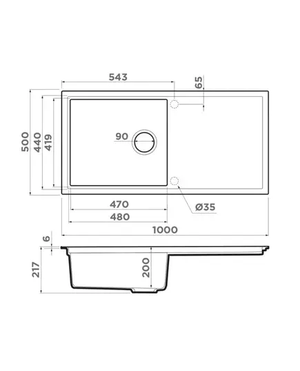 • Габариты мойки 1000х500 мм — комфорт для широких столешниц.