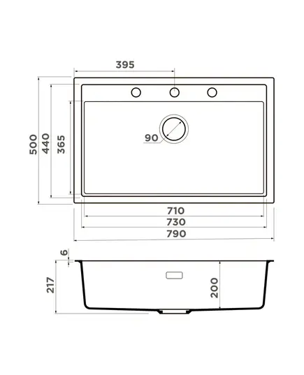 • Габариты мойки 790х500 мм — комфорт для широких столешниц.