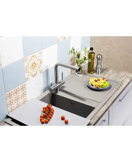 - Благодаря этому элементу мойка обретает устойчивость к воздействию различных кислот и щелочей, что гарантирует ее неизменный внешний вид.