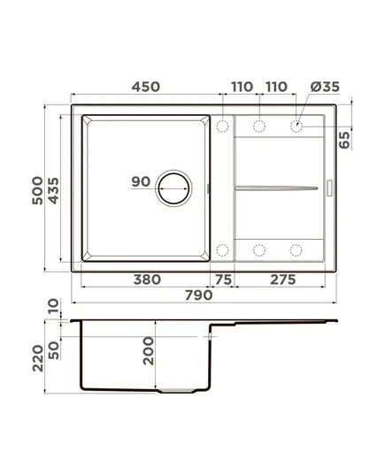- Благодаря этому элементу мойка обретает устойчивость к воздействию различных кислот и щелочей, что гарантирует ее неизменный внешний вид.