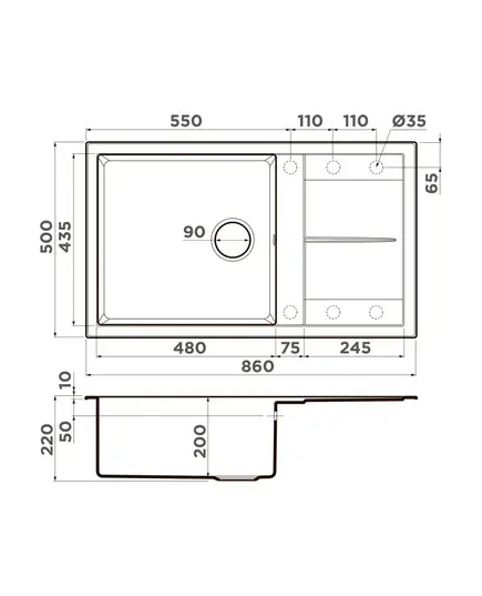 - Благодаря этому элементу мойка обретает устойчивость к воздействию различных кислот и щелочей, что гарантирует ее неизменный внешний вид.