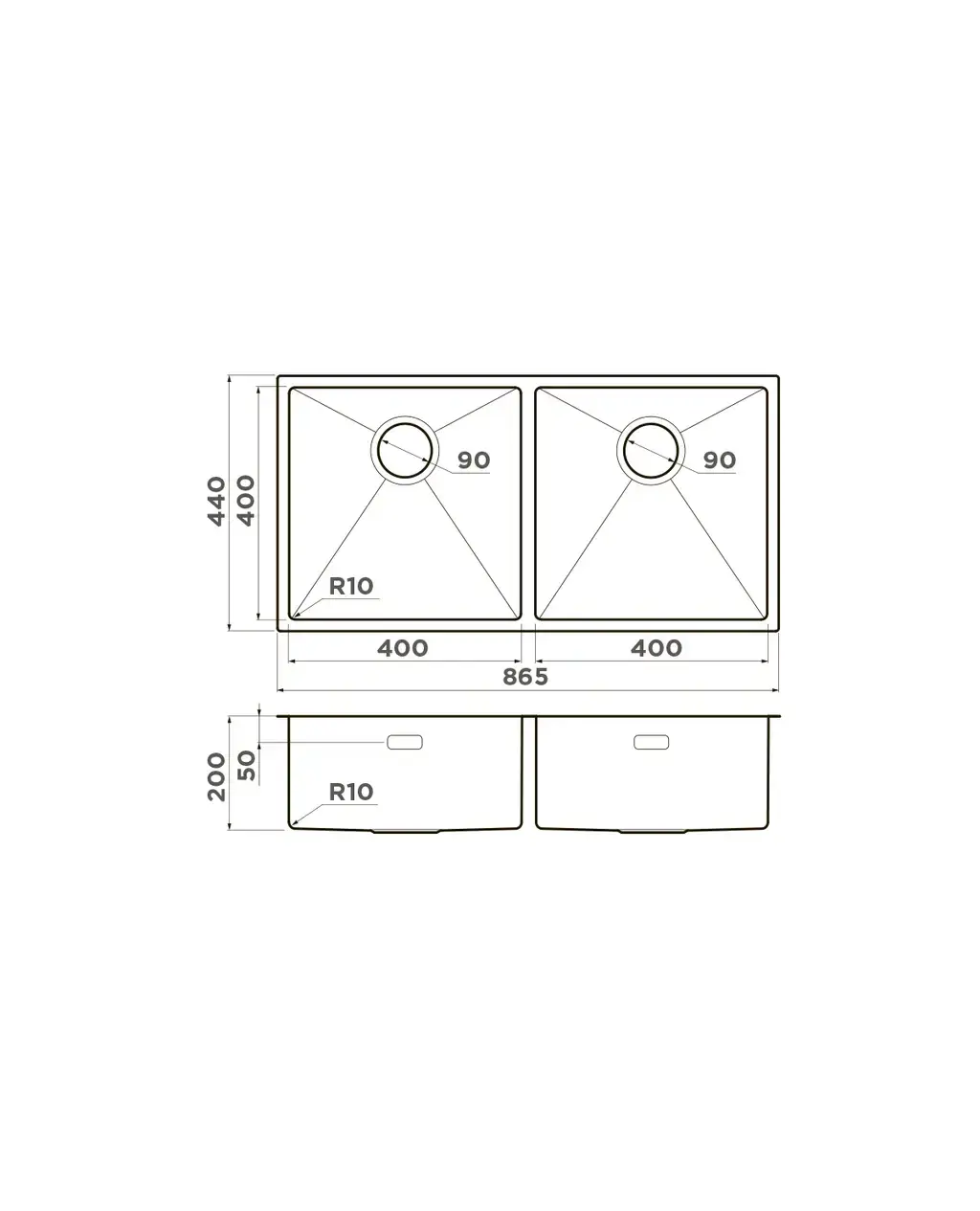 Размер мойки,мм