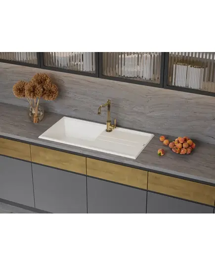 - Благодаря этому элементу мойка обретает устойчивость к воздействию различных кислот и щелочей, что гарантирует ее неизменный внешний вид.