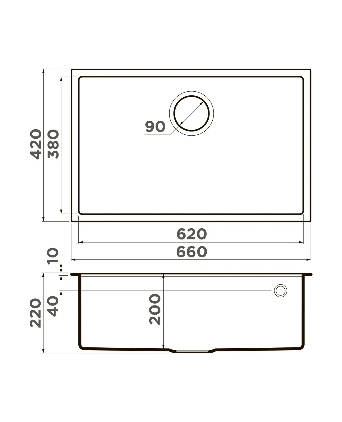 Размер мойки,мм