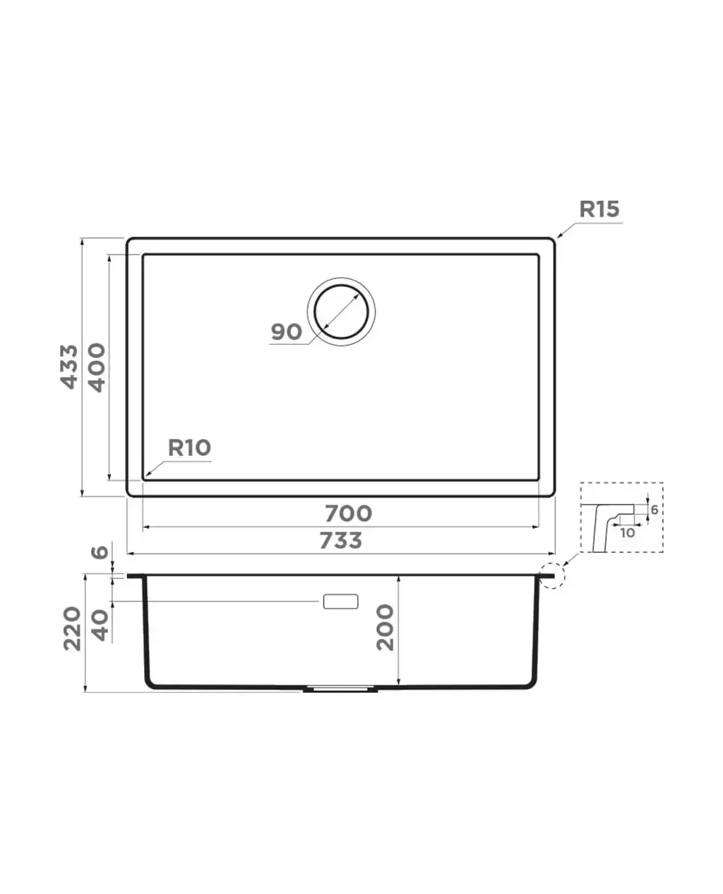 Размер мойки,мм