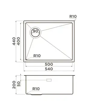 Компактные габариты мойки 540x400 мм и чаша 500x400 мм обеспечивают удобство повседневной работы.