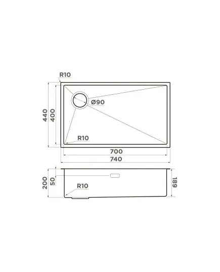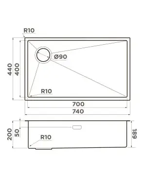 Компактные габариты мойки 740x400 мм и чаша 700x400 мм обеспечивают удобство повседневной работы.