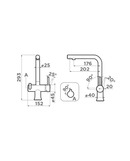 • Высота излива: 25 см