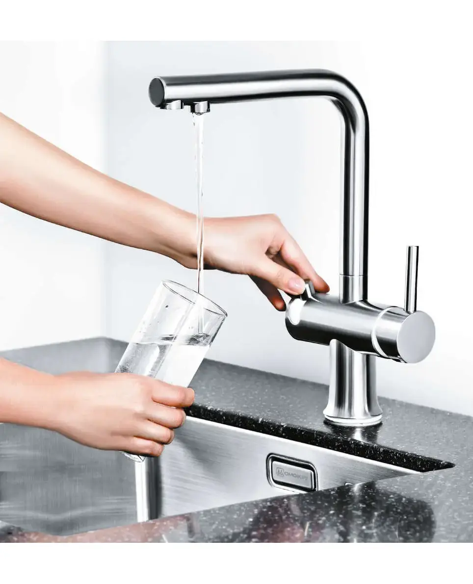 Левый рычаг - фильт. вода/ Правый - гор.| хол. вода.