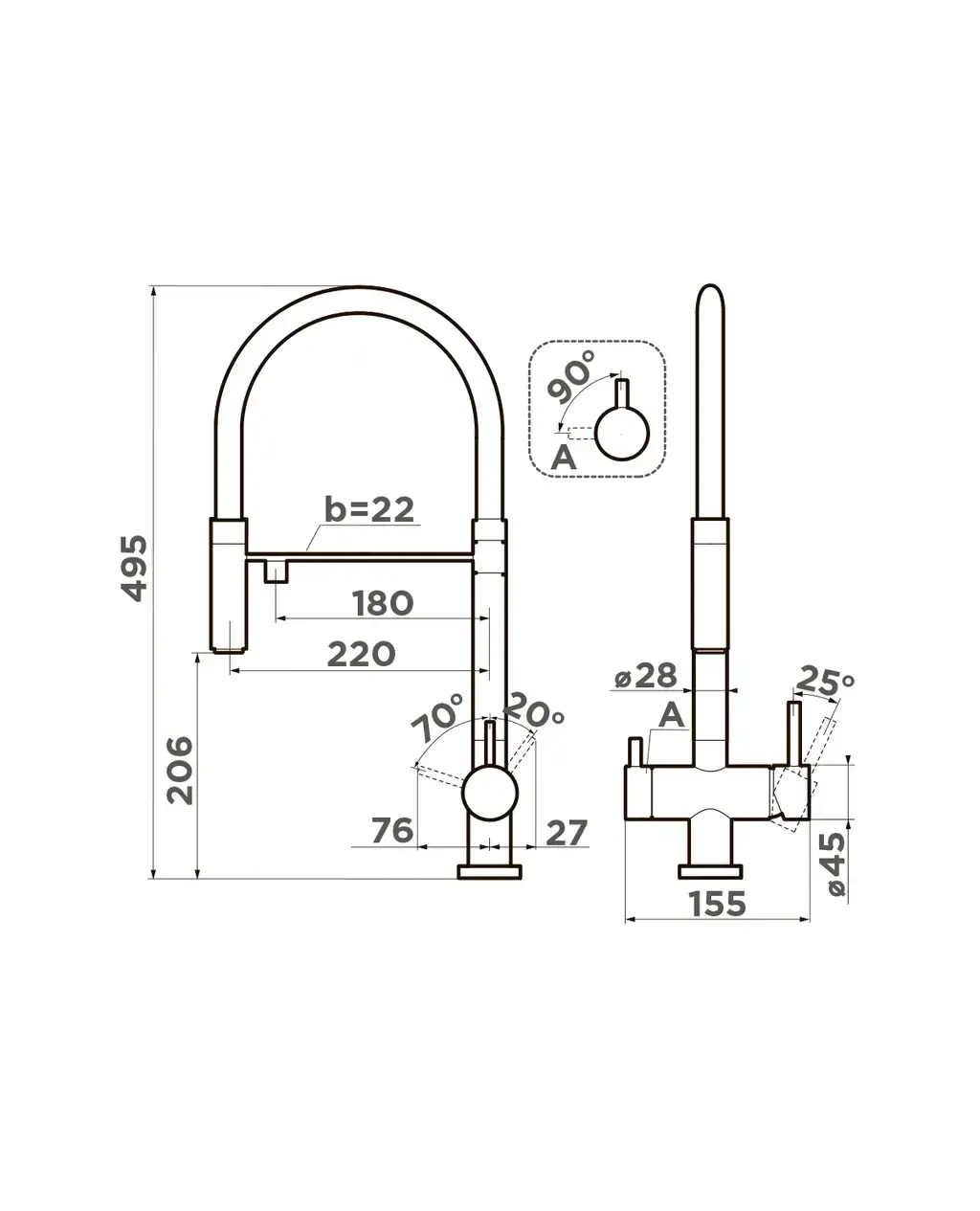• Длина излива: 22 см