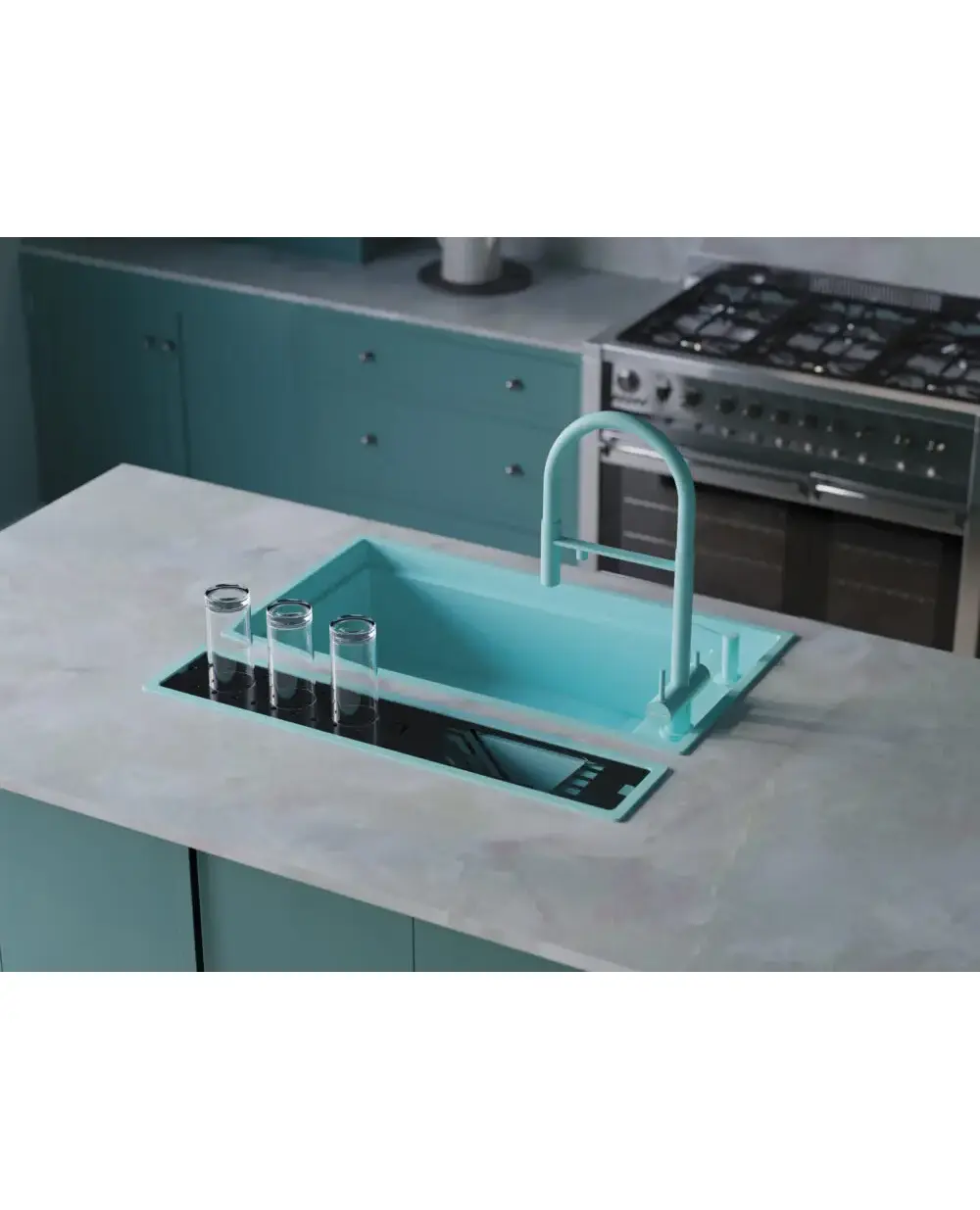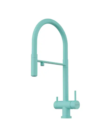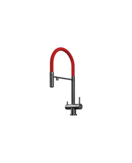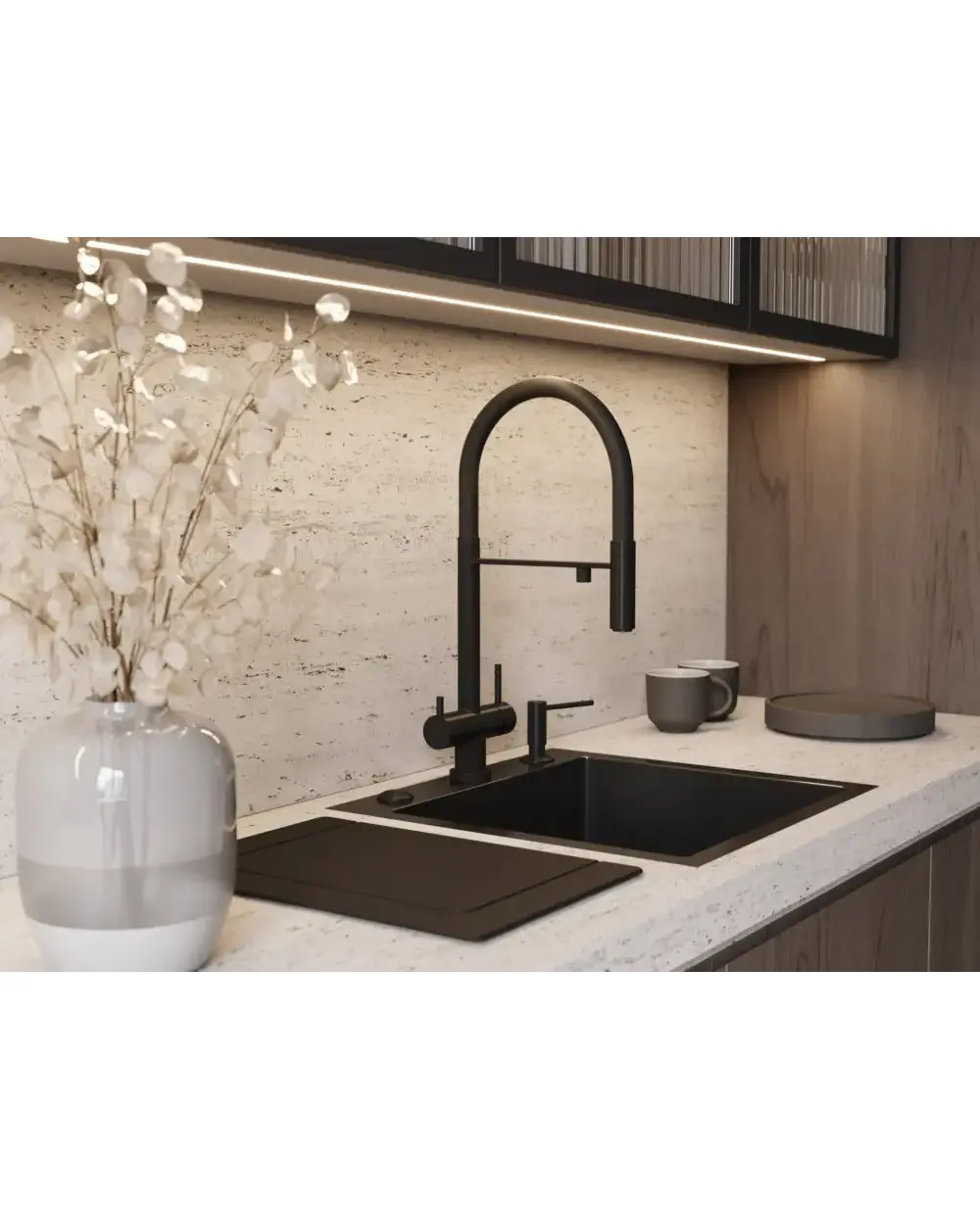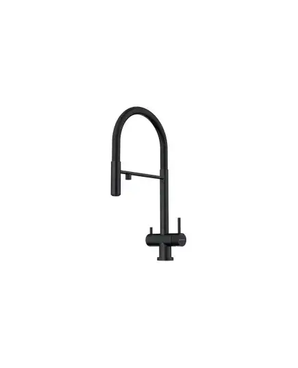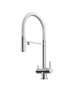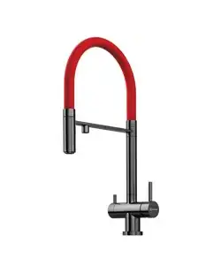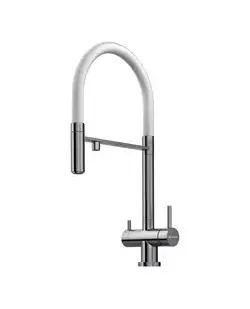 Уникальность смесителя заключается в том, что это единственный на рынке кухонный смеситель который сочетает в себе возможность подключения фильтра для питьевой воды и подвижный излив для горячей и холодной воды, с помощью которого струю можно направлять абсолютно в любую сторону.