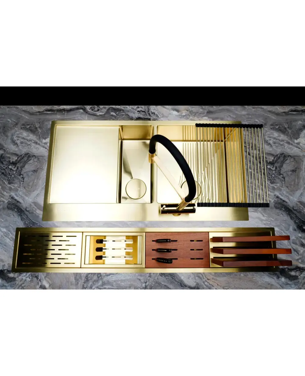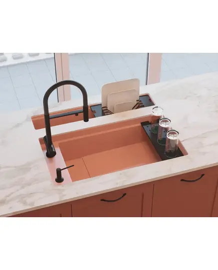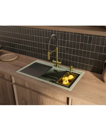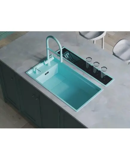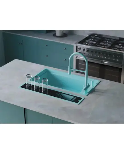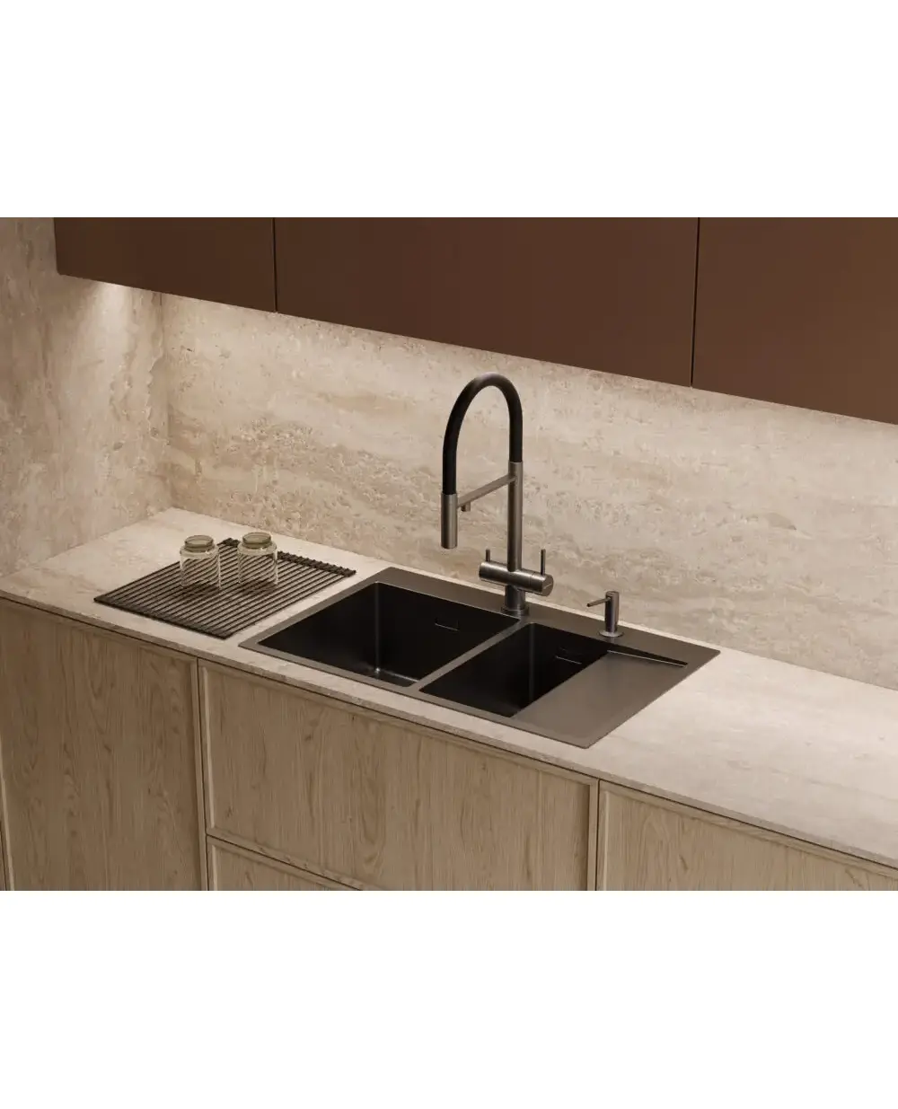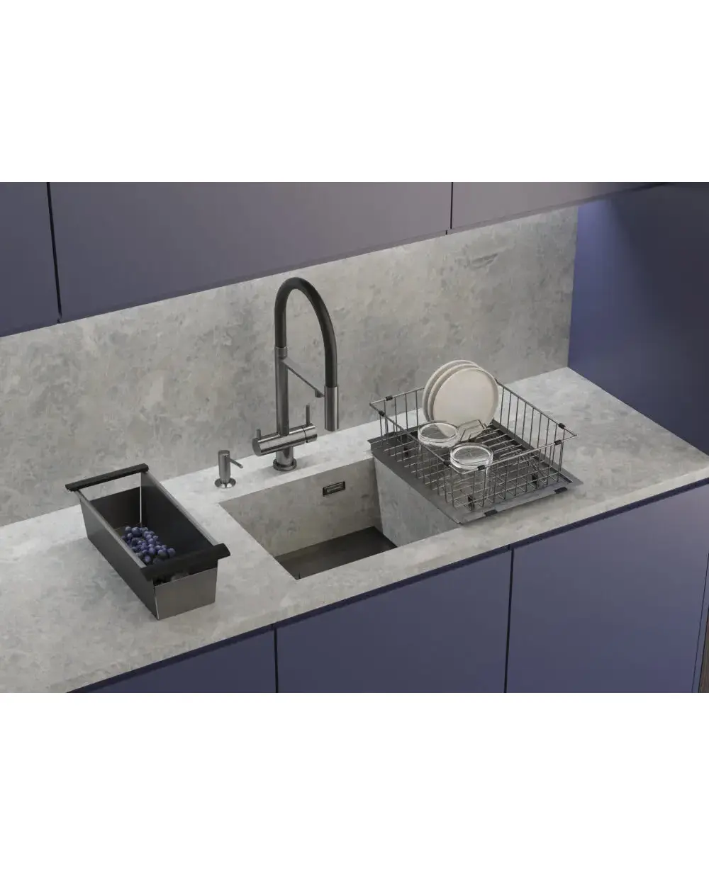 Уникальность смесителя заключается в том, что это единственный на рынке кухонный смеситель который сочетает в себе возможность подключения фильтра для питьевой воды и подвижный излив для горячей и холодной воды, с помощью которого струю можно направлять абсолютно в любую сторону.
