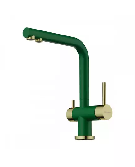 БрендOmoikiri МатериалЛатунь Вес нетто2,17 Объем0,013 Высота упаковки80 Длина упаковки460 Рычаг управленияЛевый рычаг - фильт. вода/ Правый - гор.| хол. вода. Ширина упаковки310 ЦветRoyal green ( Королевский зелёный матовый ) Гарантия 5 лет