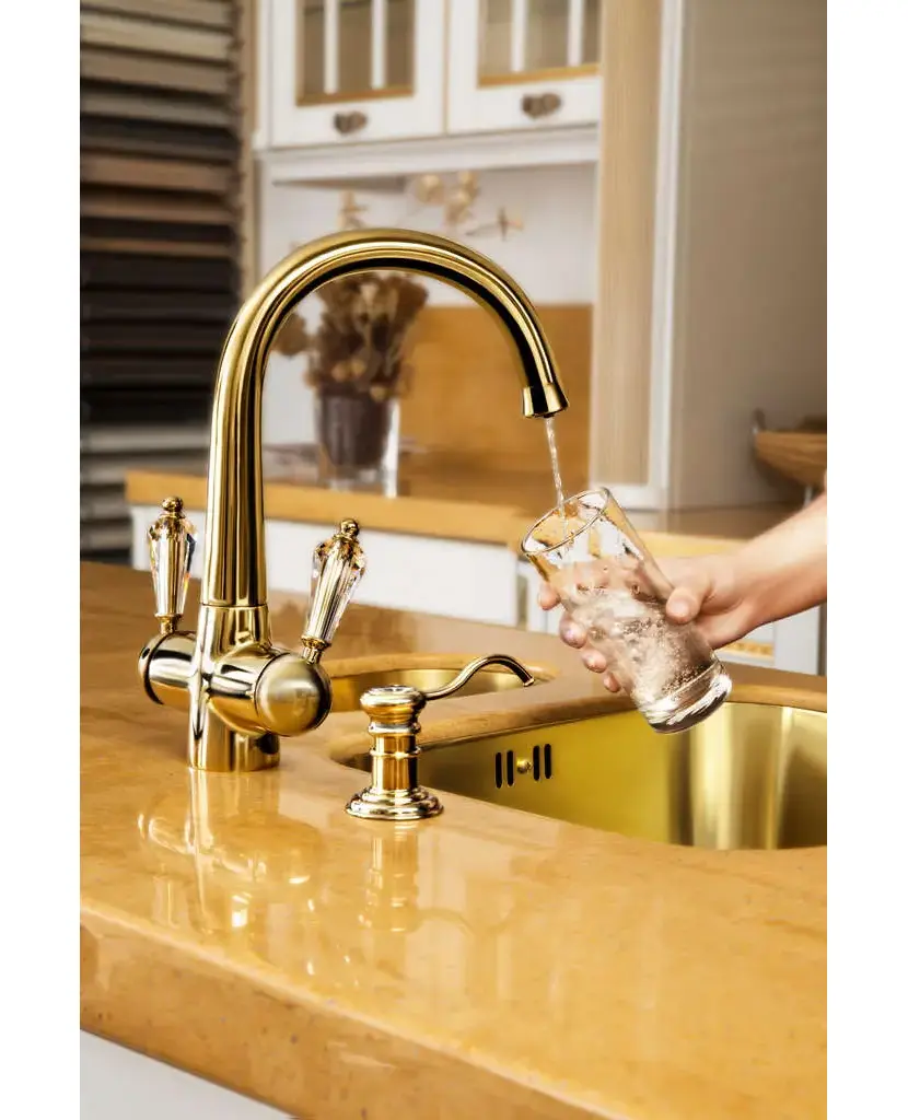 Левый рычаг - фильт. вода/ Правый - гор.| хол. вода.