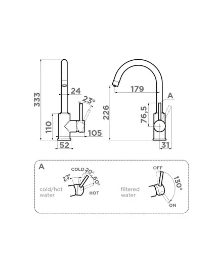 - Совет по уходу: После испарения воды на поверхности смесителя, образуются следы.